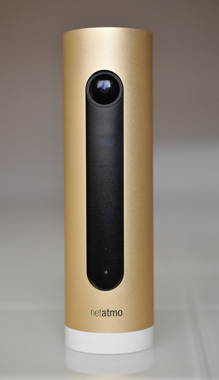 El Netatmo Welcome no desentona al ser colocado sobre una mesa o en el alfeizar de una ventana. Su aspecto difiere totalmente del de una cámara convencional, aunque su color dorado hace que no pase desapercibido. Por la noche, la luz roja que se activa para la visión nocturna por infrarrojos delata que nos encontramos ante un dispositivo tecnológico.