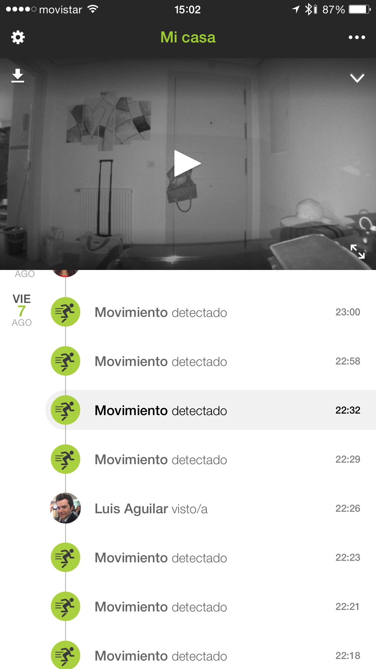 Sin embargo, las alertas de movimiento sí que resultan útiles para saber que algo está pasando en casa y podemos conectarnos a Netatmo Welcome desde el móvil para ver el vídeo que se ha grabado cuando ha ocurrido ese movimiento, y comprobar nosotros mismos de quién o qué se trata.